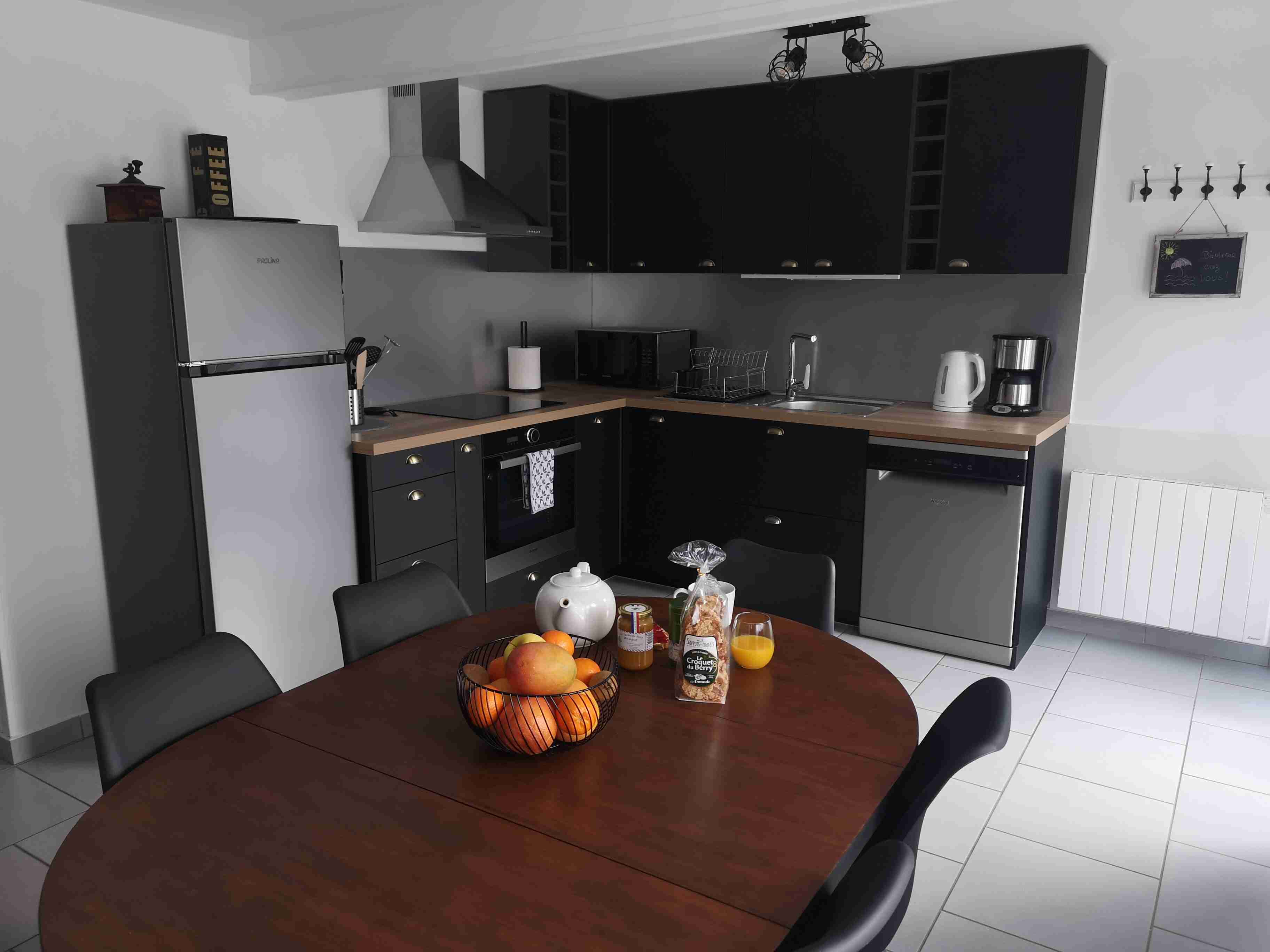 Les pièces / équipements mis à votre disposition dans la maison : Les pièces / équipements mis à votre disposition dans la maison : • Une cuisine équipée pour 6 personnes avec tout l'électroménager nécessaire (lave-vaisselle, plaques à induction, réfrigérateur avec compartiment congélateur, four traditionnel, micro-onde, grille-pain, cafetière filtre, bouilloire, appareil à raclette) • Un espace salle à manger avec une table pouvant accueillir 6 personnes • Un salon équipé d’un grand canapé d’angle (convertible), d’une table basse et de deux fauteuils • Une grande chambre de 14m² avec lit double (160 x 200) et un placard dressing • Une seconde chambre de 11m² avec deux lits simples (90 x 200) pouvant être rassemblés pour faire un lit double et un placard dressing • Une salle d’eau comportant une cabine de douche (90 x 90) et une machine à laver le linge • Des toilettes séparées • Une terrasse extérieure de 11 m² avec table de jardin, parasol et barbecue