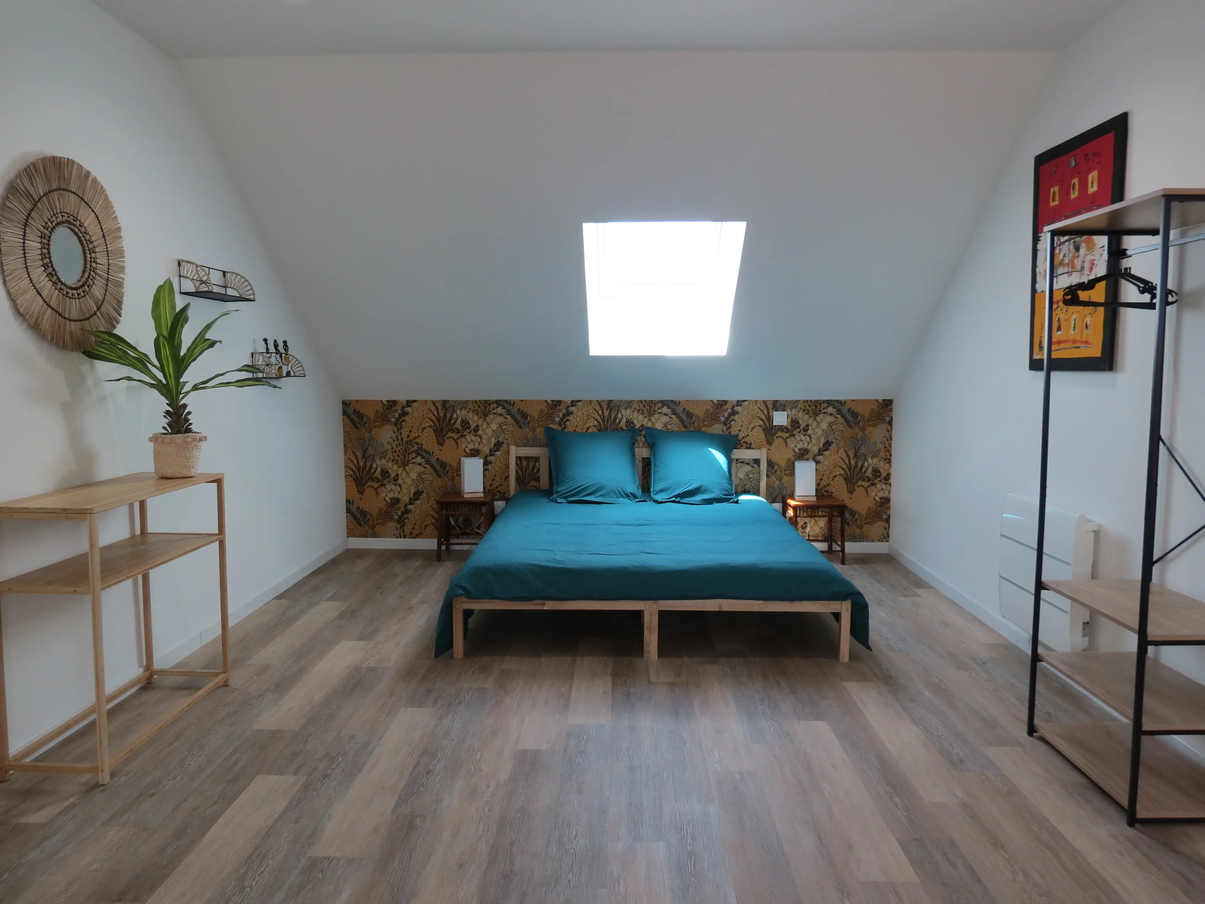 Notre gîte la « Bohème » a été entièrement rénové pour créer une atmosphère chaleureuse et conviviale, idéal pour des retrouvailles en famille ou entre amis. Cette maison de 200 m² pouvant accueillir jusqu’à 15 personnes est composée au rez-de-chaussée d’un grand espace de vie ouvert avec cuisine, salle à manger et salon de 54m² et de 3 chambres. A l’étage, un dortoir avec des cloisons séparatrices dispose de 9 couchages supplémentaires (3 lits queen size 160x200 et 3 lits simples 90x200). La maison dispose d’un jardin de 2200 m². Vous pourrez également profiter de la piscine 4 x 9m partagée (non chauffée de mai à septembre et en fonction de la météo) avec les éventuels locataires du gîte "La Fabrique"