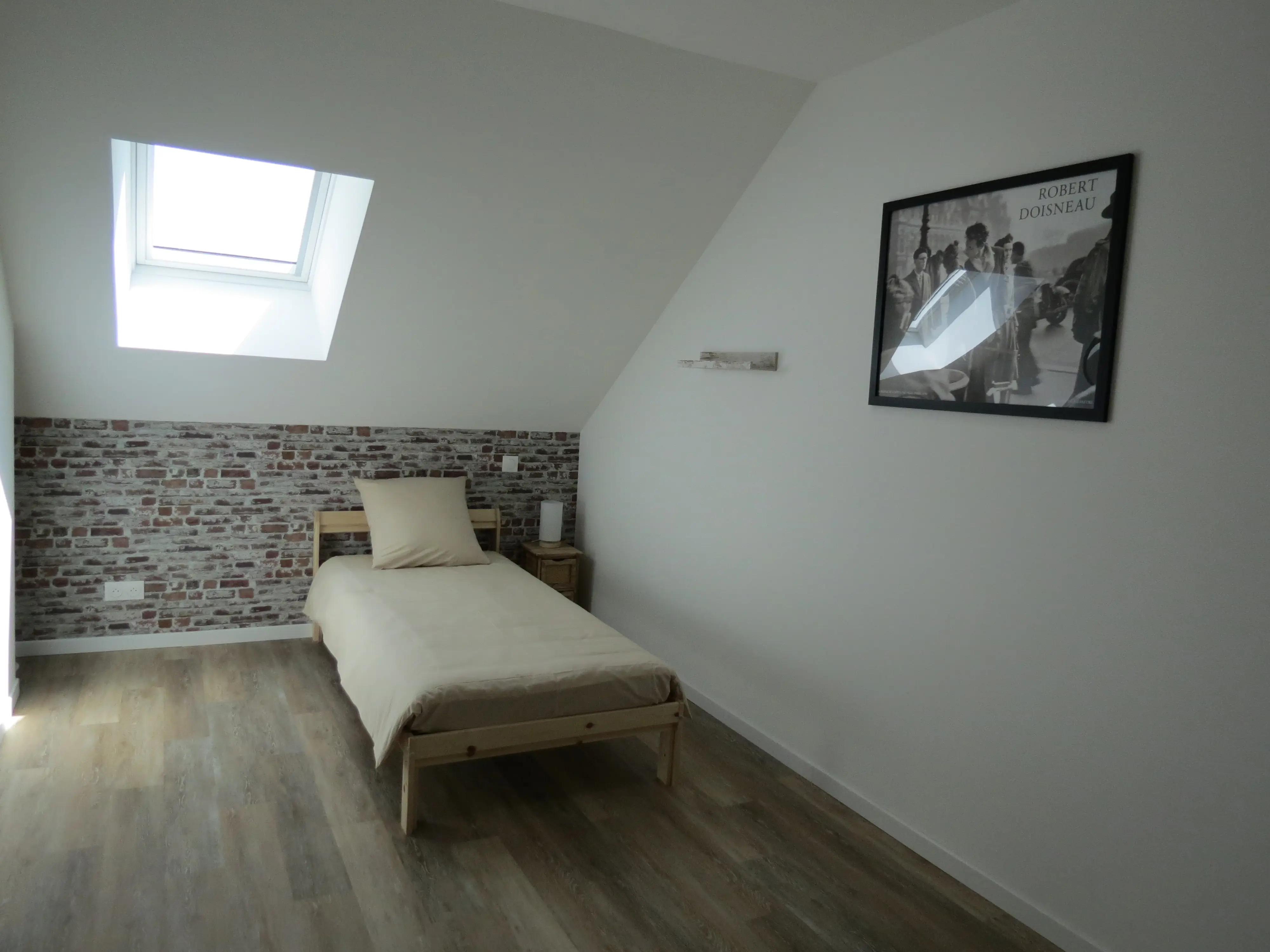 A l’étage : • Un dortoir de 9 couchages (3 lits queen size 160x200 et 3 lits simple 90x00) • Des sanitaires avec une double vasque, 2 cabines de douche (80x100) et 2 toilettes A l’extérieur : • Jardin indépendant de 2200 m² • Tables de jardin avec chaises pour 15 personnes • Parasols • Chaises longues • Barbecue