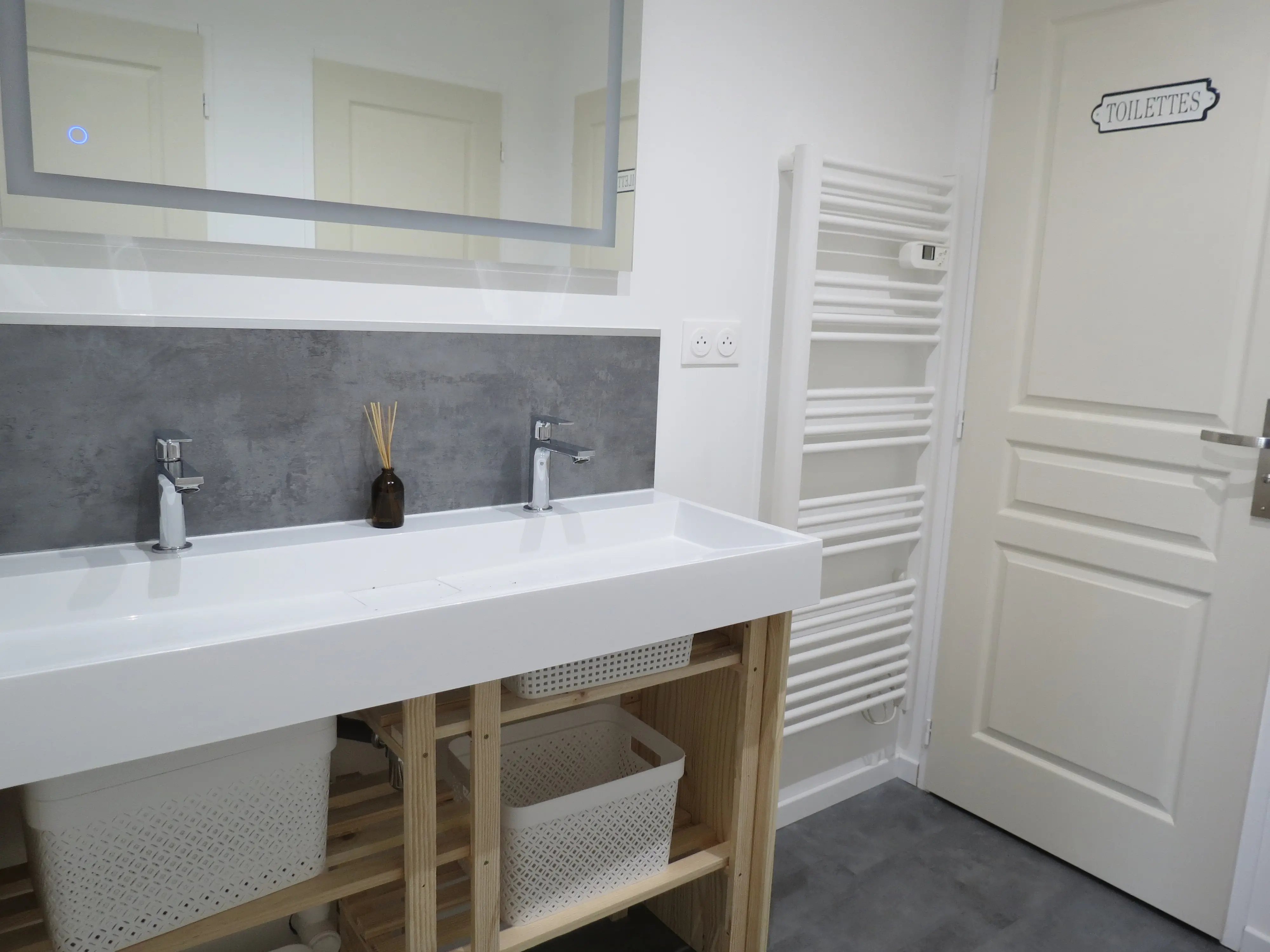 Les pièces / équipements mis à votre disposition dans la maison : Au rez-de-chaussée : • Une cuisine équipée avec tout l'électroménager nécessaire (lave-vaisselle, plaques à induction, réfrigérateur, congélateur, four traditionnel, micro-onde, grille-pain, cafetière filtre, bouilloire) • Un espace salle à manger avec une grande table • Un salon équipé de 2 grands canapés d’angle, de tables basses, d’assises supplémentaires et d’une télévision • Une première chambre de 13 m² avec lit queen size (160x200) • Une seconde chambre de 10m² avec lit queen size (160x200) • Une troisième chambre de 11m² avec deux lits simples (90x200) • Une salle d’eau comprenant une double vasque, une cabine de douche (90x120) avec machine à laver le linge • Des toilettes séparées